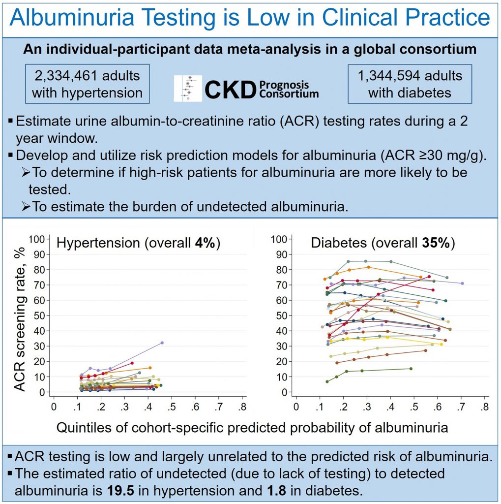 Routine blood and urine tests can detect kidney damage early, yet studies show that only 35% of patients with diabetes and 4% of patients with high blood pressure receive the recommended urine screening for CKD.